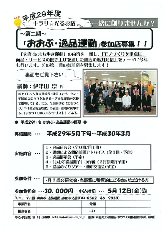 大府市一店逸品運動 2017年5月~2018月3月 主催:大府商工会議所