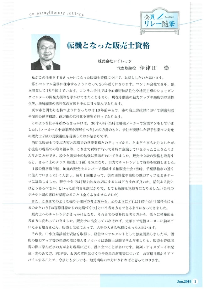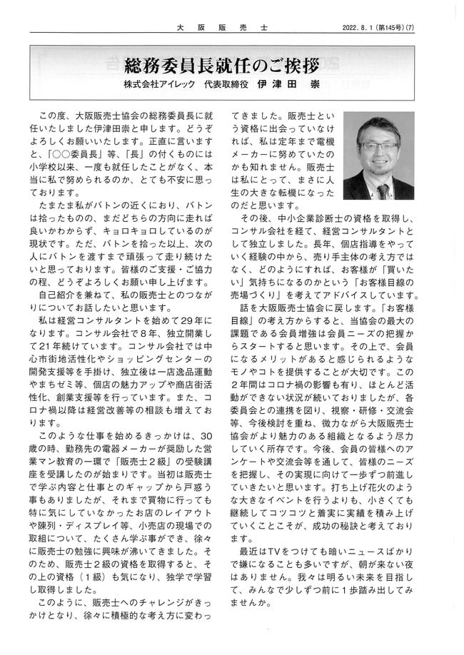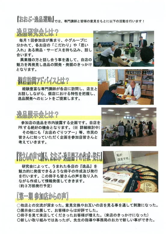 その中で一店逸品運動や個店の魅力づくり等の支援を通し、少しでも皆様のお力になることができれば幸いです。